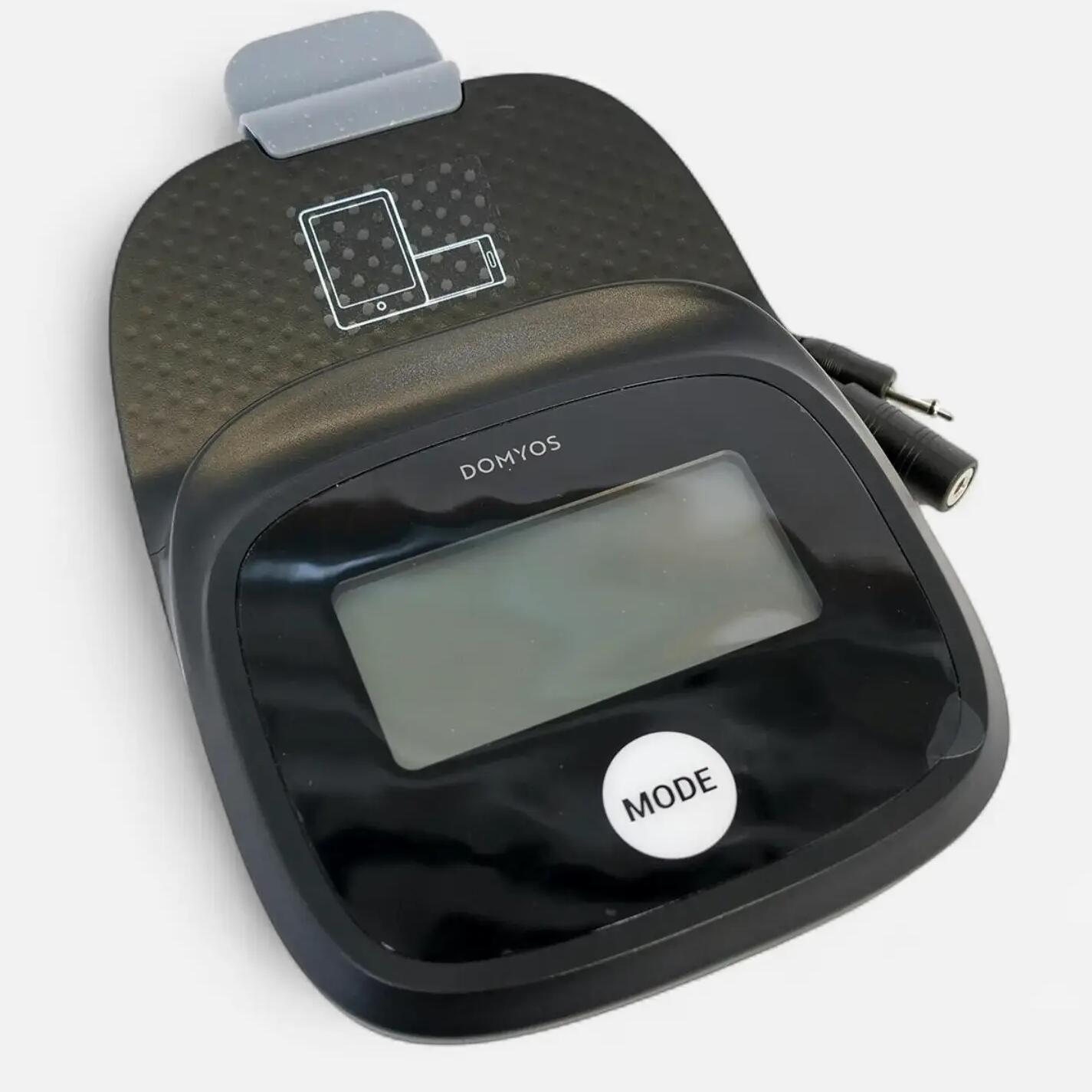 Konsola roweru Domyos X-Bike włącza się automatycznie w momencie rozpoczęcia pedałowania lub po naciśnięciu przycisku MODE (1).