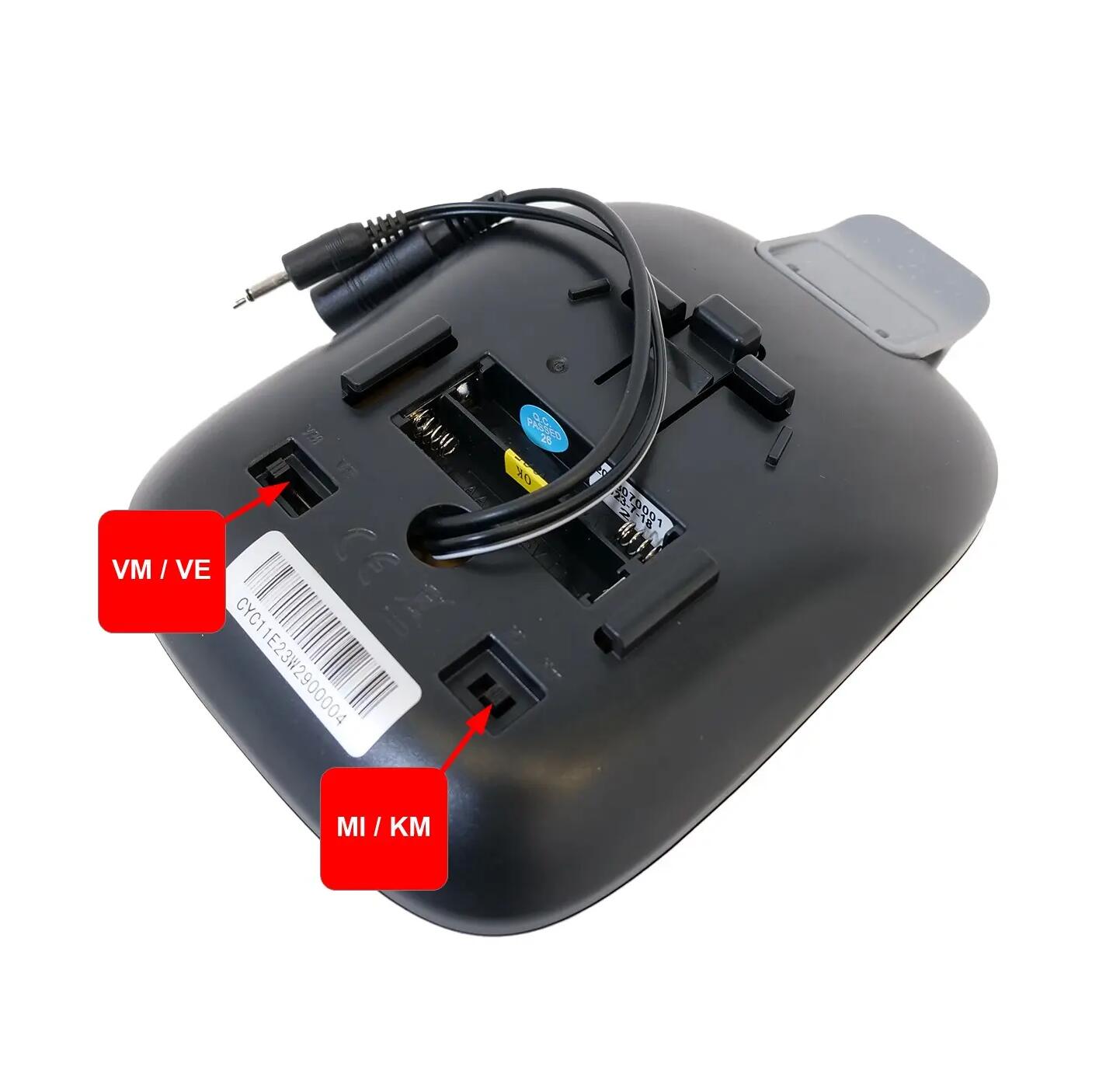Jednostkę miary (kilometry - KM lub mile - MI) ustawia się za pomocą dedykowanego suwaka znajdującego się z tyłu konsoli.